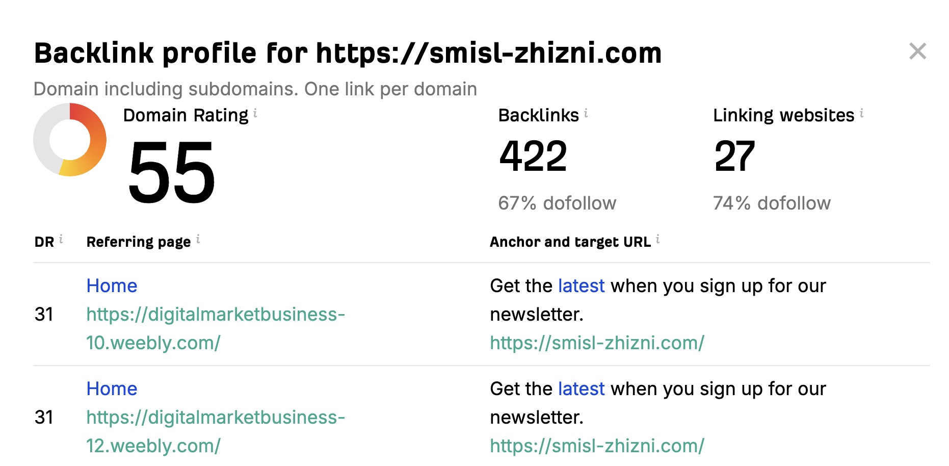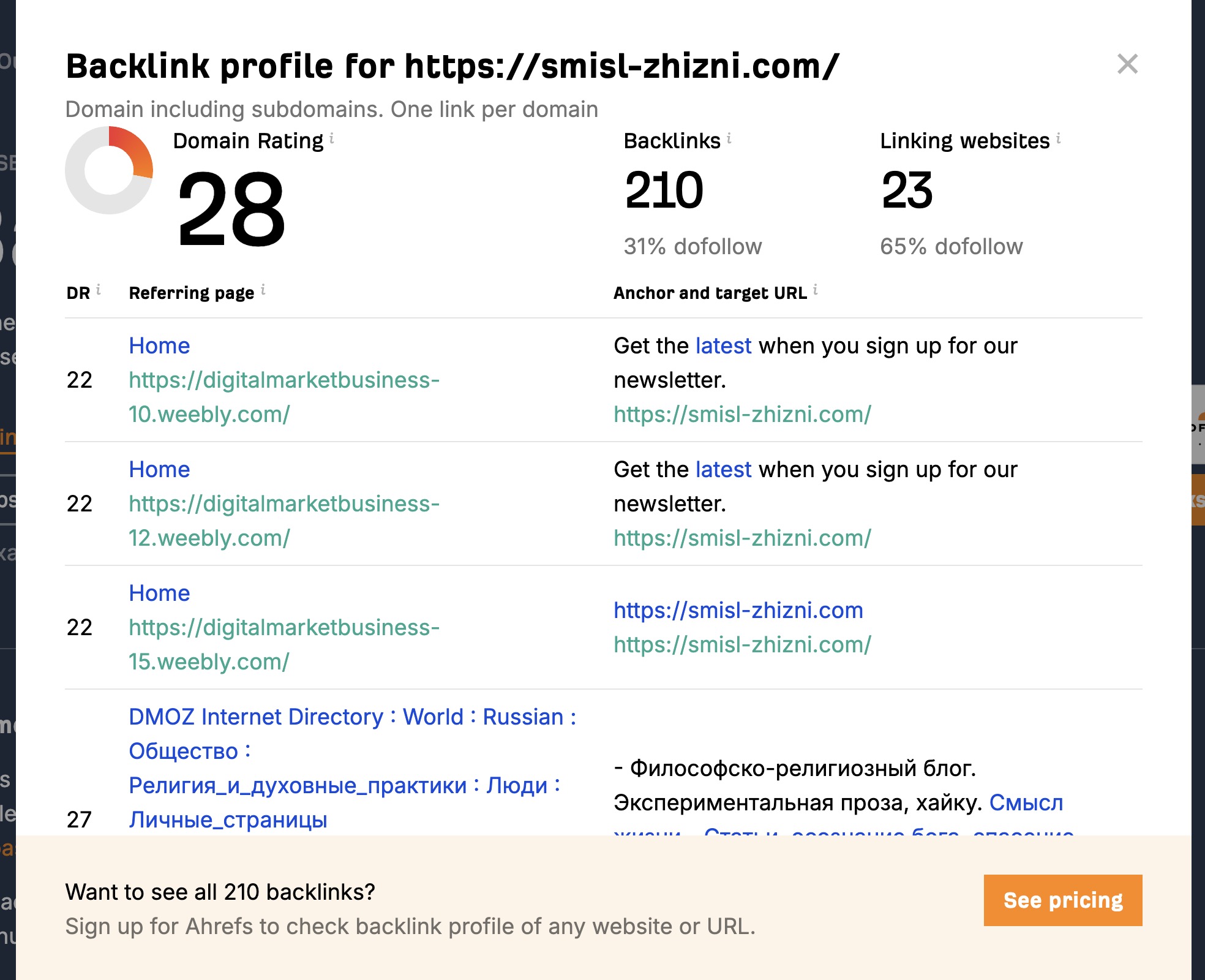 Ссылки для проверки https://ahrefs.com/backlink-checker/?input=https%3A%2F%2Fsmisl-zhizni.com&mode=subdomains